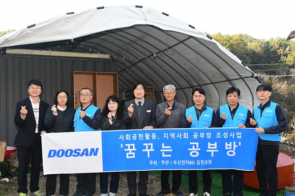 새롭게 꾸며진 공부방은 아동들이 보다 쾌적하고 안전한 환경에서 학습할 수 있도록 조성되었으며, 정서적 안정 도모 및 장기적 자립 역량 강화에도 기여할 것으로 기대된다. 최영식 ㈜두산전자 김천공장장은 “지역사회와 함께 성장하기 위해서는 아이들의 미래를 밝히는 일이 무엇보다 중요하다.”라며, “앞으로도 김천시와 협력해 교육 취약계층을 위한 지속 가능한 사회공헌 활동을 이어가며 아이들이 희망을 잃지 않고 건강한 사회 구성원으로 성장할 수 있도록 지원하겠다.”라고 말했다.