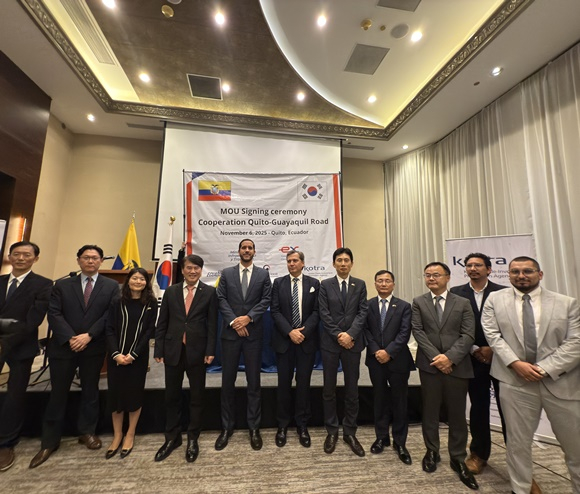이에 한국도로공사는 사업의 운영·협력을 공식화하기 위해 6일(목) 에콰도르 인프라교통부(MIT)와 키토∼과야킬 도로개량 사전타당성 조사 협력을 위한 양해각서를 체결했다. 한편, 에콰도르는 해발 3,000m 이상의 산악지형으로 도로에 급회전 구간과 급경사가 많은 지형적 특성으로 통행속도가 낮고, 운행 위험이 높아 도로 정비가 국가 경제발전의 핵심과제로 대두되고 있다. 이번 조사는 지역 간 통행시간 단축과 도로 안전성을 제고하고, 우리나라의 산업화를 이끌었던 도로 건설 노하우도 전수할 계획이다. 한국도로공사 관계자는 “이번 양해각서는 KOTRA, 현지 대사관의 적극적인 지원과 협력 덕분으로, 에콰도르 사업을 바탕으로 중남미 지역에서 국내 기업의 사업을 더욱 확대하고 국내 민간기업의 해외 진출 기회를 늘리겠다”라고 말했다.