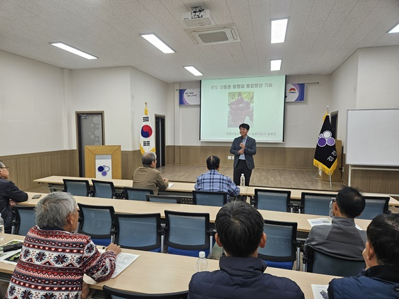 김천시는 7일 김천시포도수출유통영농조합법인에서 김천포도 농가를 대상으로 ‘포도 신품종 동향과 포도산업 대응전략’을 주제로 교육을 실시했다.