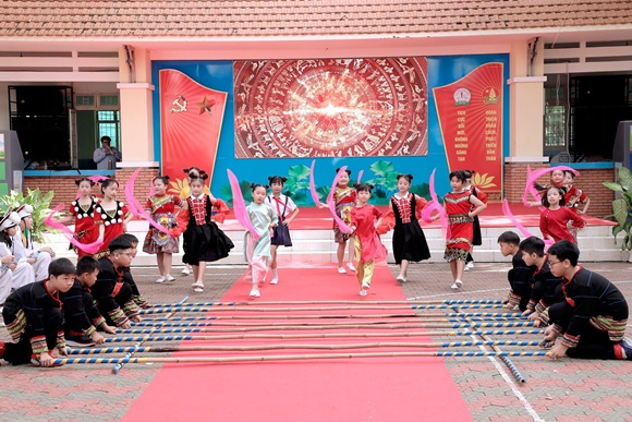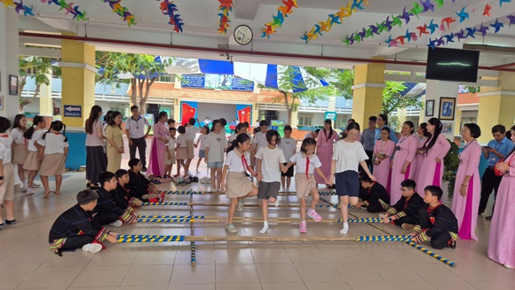 상호 협력 약속 및 문화 교류 활동 양교는 지속적이고 체계적인 교류를 위한 국제교류 MOU(양해각서)를 체결하며 상호 협력의 의지를 다졌다. MOU 체결 후에는 학생들이 직접 참여하는 활발한 문화 교류 활동이 이어졌다. 개령초 학생들은 김천의 자랑이자 국가무형문화유산인 '빗내농악' 공연을 선보여 현지 학생들의 큰 호응을 얻었으며, 레반땀초 학생들은 베트남의 아름다운 전통 공연으로 화답하며 우의를 다졌다. 서로의 공연을 관람한 후 학생들은 문화교류 시간이 이어졌다. 개령초 학생들이 준비한 제기차기, 공기놀이 등 한국 전통 놀이 체험 부스는 큰 인기를 끌었다. 또한, 농악 악기 및 상모 체험을 통해 베트남 친구들이 한국 문화를 보다 깊이 이해하는 시간을 가졌다. 레반땀초에서는 베트남의 전통 찹쌀반죽 공예인 또헤(Tò he) 만들기와 역동적인 '사다리 춤' 체험을 준비하여 학생들에게 베트남 문화를 직접 느낄 수 있는 기회를 제공했다. 특히, 양교 학생들은 급식을 함께 나누어 먹으며 자연스럽게 소통하고 친밀감을 형성하는 시간을 가졌다.