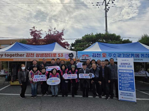 감천면 행정복지센터(면장 이상진)는 지난 11일, 감천면 행정복지센터 앞마당에서 감천면 생활개선회(회장 유정연) 주관으로 상생장터를 운영하고 전 회원이 참여한 가운데 청렴다짐대회를 실시했다.