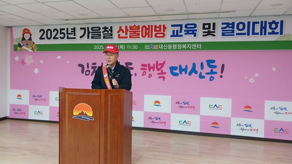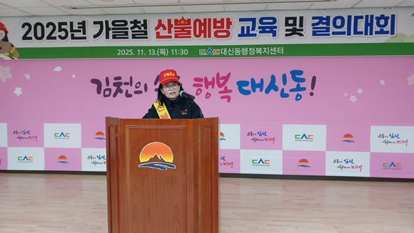 김천시 대신동행정복지센터(동장 이해정)는 11월 13일(목) 오전 11시 30분 센터 회의실에서 ‘산불예방 교육 및 결의대회’를 열고 본격적인 산불 예방 활동에 돌입했다.