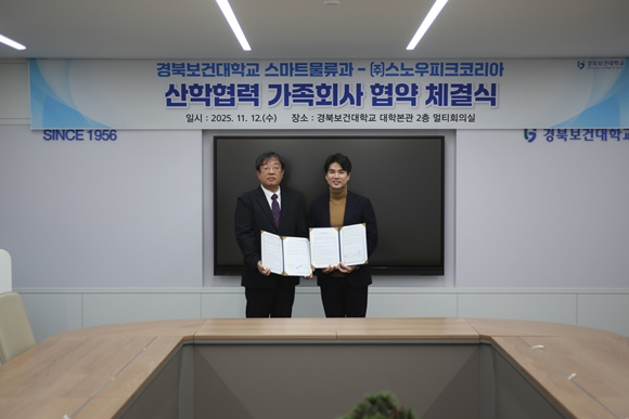경북보건대학교(총장 이은직)와 스노우피크코리아(대표 김남형)는 지난 11월 12일, 지역 산업 발전과 미래형 인재 육성을 위한 산학협력 및 지역인재 양성 업무협약(MOU)을 체결했다고 13일 밝혔다.