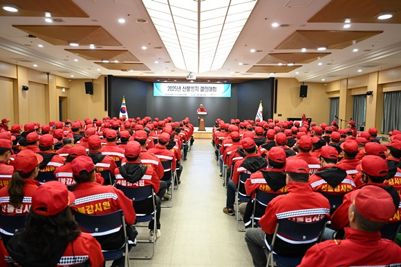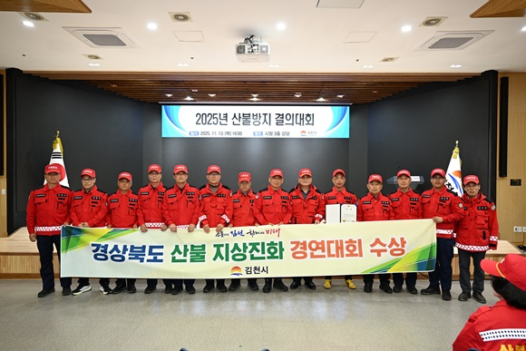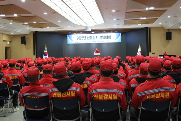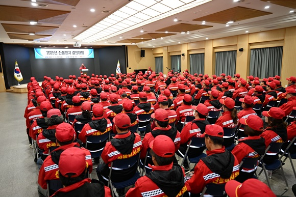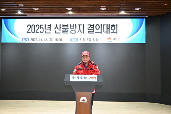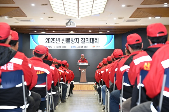 김천시는 2025년 11월 13일 김천시청 대강당에서 공무원, 산불전문예방진화대, 산불감시원 등 300여 명이 참석한 가운데 산불방지 결의대회를 개최했다.