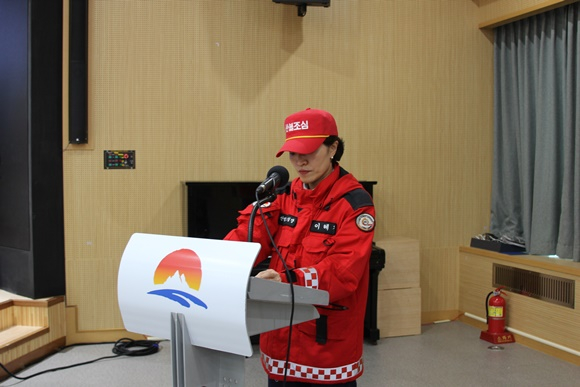 행사는 산불감시원 및 산불전문예방진화대의 결의문 낭독을 시작으로 산불예방 및 방지 교육, 산불감시원 및 산불전문예방진화대 근무요령에 대한 교육 순으로 진행되었다.