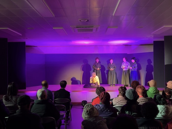 지난해에 이어 두 번째로 대덕면을 찾은 구성면 연극단은, 첫 공연 당시 어르신들의 뜨거운 호응에 힘입어 다시 무대를 마련했다. 이번 공연에서는 창작극 ‘방초정 연정’을 선보이며 ‘환생’이라는 흥미로운 설정으로 가족 간의 정을 따뜻하면서도 유쾌하게 풀어내 큰 공감을 얻었다. 공연은 현실감 있는 대사와 정겨운 장면들로 관객들의 웃음과 박수를 이끌어 냈으며, 단원들의 자연스러운 연기 위에 노하룡 감독의 세심한 연출과 김천팝스오케스트라 이부화 지휘자의 잔잔한 선율이 더해져 복지회관은 따뜻한 감동으로 물들었다.