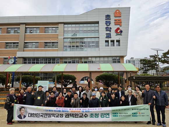 또한 “겨울철 맨발걷기가 여름보다 더 효과적이며, 최소 40분 이상 걸어야 몸이 스스로 면역력을 회복할 수 있다.”라며 구체적인 실천 요령도 전했다. 특히 장학사 시절 사진과 현재의 모습을 비교하며 “맨발걷기를 꾸준히 실천한 지난 10년 동안 오히려 더 젊어졌다는 말을 듣는다”라며 웃음을 자아냈고 “매일 조금씩이라도 맨발로 걷는 습관을 들이면 누구나 건강한 변화를 체험할 수 있다”라고 조언했다. 강연 후에는 참석자들이 율곡초등학교 운동장으로 이동해 직접 맨발로 흙을 밟고 걸어보는 맨발걷기 체험 활동이 이어졌다. 주민들은 처음에는 다소 낯설어했지만, 시간이 지나면서 “생각보다 따뜻하고, 발끝부터 몸이 시원해지는 느낌이 든다”라며 긍정적인 반응을 보였다.
