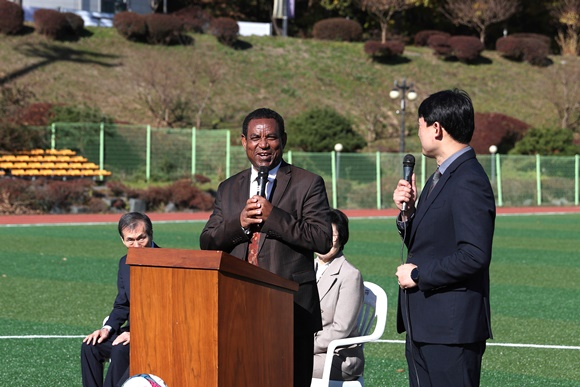 이번 행사에서는 김천대학교 축구부와 에티오피아 코리아FC 선수단이 함께 모여 기념 촬영을 하고, 친선 경기를 약속하는 등 화기애애한 분위기 속에서 진행됐다. 양측은 이번 교류가 지속적인 스포츠 협력의 시작점이 될 것이라며 기대를 모았다.