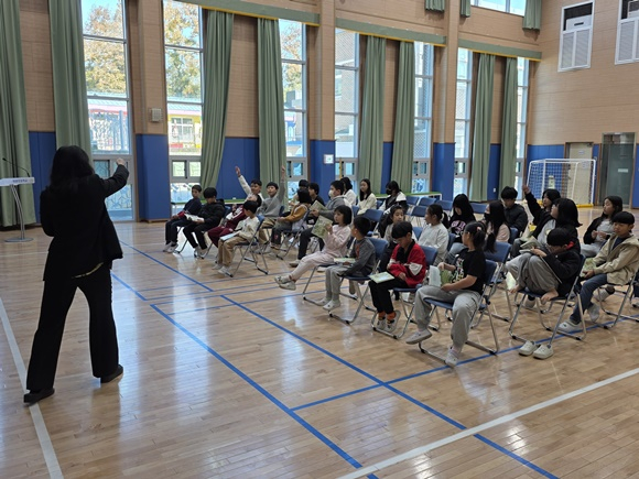 이어진 질의응답 시간에는 학생들이 직접 작가에게 질문을 던지며 장면 묘사 방법, 책을 쓰기까지의 과정, 작가의 일상과 창작 태도 등 다양한 궁금증을 나누었다. 작가님은 진솔한 답변으로 학생들이 독서와 글쓰기에 흥미를 가질 수 있도록 격려하였다. 이태선 교장은 “작가님을 직접 만나 이야기를 듣는 경험은 학생들에게 책 읽기의 즐거움뿐만 아니라 삶을 바라보는 폭넓은 시각을 열어주는 시간이었다.”며 “앞으로도 아이들이 책과 더 친해지고 상상력을 마음껏 펼칠 수 있도록 독서 교육을 적극 지원하겠다.”고 말했다.