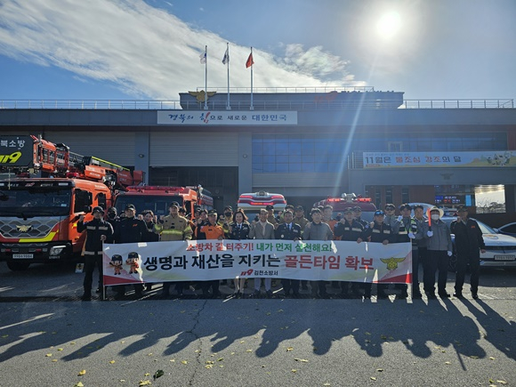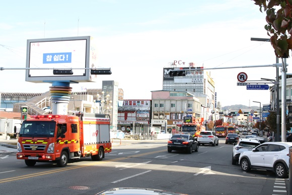김천소방서(서장 송영환)는 11월 17일(월) 오후 2시경 ‘2025년 불조심 강조의 달’을 맞아 소방차 퍼레이드와 함께 소방출동로 확보 및 길 터주기 훈련을 실시하며 시민 안전의식 제고와 재난현장 골든타임 확보에 나섰다고 밝혔다.