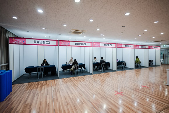 지난해 처음 개최되어 큰 호응을 얻은 ‘도전! 영어인증 한마당’은 학생들이 스스로 도전 과제를 수행하고 인증을 받는 과정을 통해 영어에 대한 자신감을 높이며, 자기 주도 학습 능력을 강화하도록 마련된 영어 분야 도 단위 ‘도전 꿈 성취 교육감 인증제’ 프로그램이다. ‘인증한마당’에서는 초등학생이 4개 주제 부스를 방문해 원어민교사와 대화하며, 각 부스에서 참여 인증을 받고, 중학생은 다양한 주제로 구성된 3개 주제 부스에서 원어민과 자유롭게 영어로 대화한 뒤 자신의 영어 실력을 1~3등급으로 인증받게 된다.