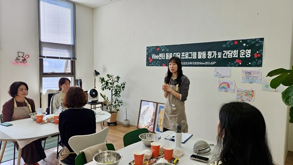 경상북도김천교육지원청(교육장 모태화) Wee센터는 11월 20일(목) 삼층집 베이킹 스튜디오에서 돋움·디딤 프로그램 활동 평가 및 간담회를 운영하였다.