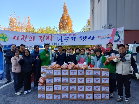 김천시 율곡동 새마을부녀회(회장 김주미)는 11월 21일(금) 오전, 율곡동 행정복지센터 뒤편 주차장에서 ‘사랑의 김장 나누기’ 행사를 진행했다.