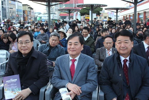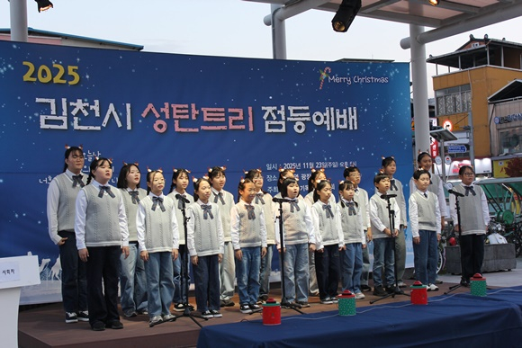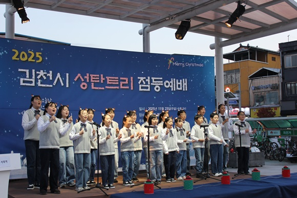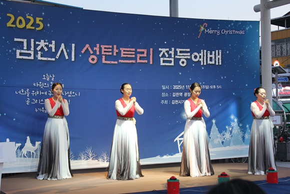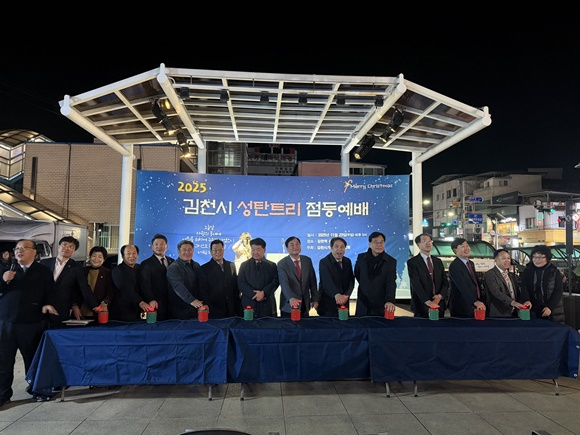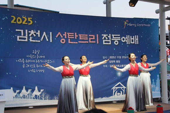 어둠이 깔린 김천역 광장에 성탄트리가 점등되는 순간, 시민들은 환호와 박수로 올 한 해의 감사와 다가올 새해의 희망을 함께 나누었다. 반짝이는 불빛은 김천시 중심에서 사랑과 평화의 메시지를 환하게 비추었다.