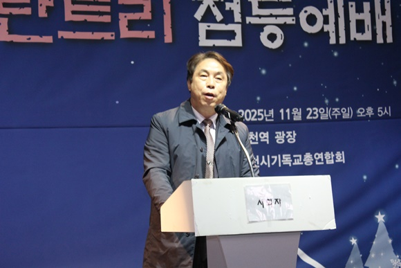 예배 후 이동기 목사가 참석한 내빈을 소개하며 성탄점등 행사에 함께한 지역 교계·시민들에게 감사 인사를 전했다.
