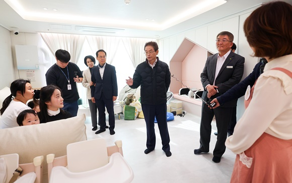 이철우 경상북도지사는 24일 도청신도시(예천군 호명읍)에 설치된 0세 특화반을 방문해 운영 현황을 살피고 현장 의견을 청취했다.