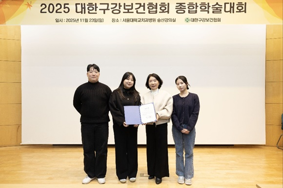전O진 학생은 “대학생 시기에 형성되는 구강건강 습관이 평생의 치과 이용 행동에 영향을 줄 수 있다는 점을 연구하며 많은 것을 배웠다”며 “학부생으로서 대규모 학술대회에서 연구가 인정받아 매우 뜻깊었고, 앞으로도 구강건강 분야에서 의미 있는 연구를 이어가고 싶다”고 소감을 밝혔다.