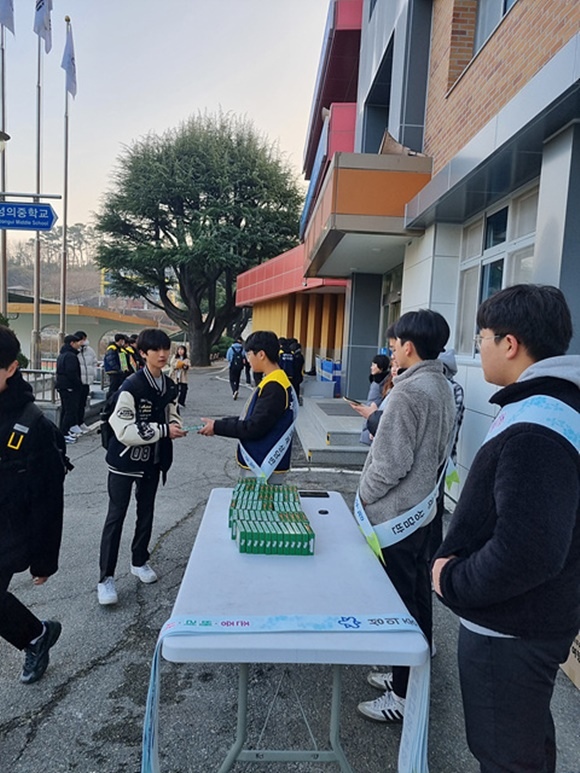 성의중 생명존중 등굣길 맞아주기 행사 실시
