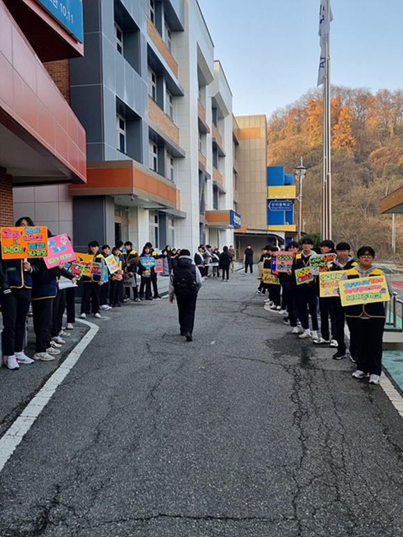 성의중학교(교장 신재을)는 2025년 11월 26일(수) 오전 8시 본교 교정 앞에서 [2025 하반기 마음건강 특별 살핌주간]을 맞아 자살예방 및 생명존중교육에 앞서 아침 등굣길 맞아주기 행사를 실시하였다.