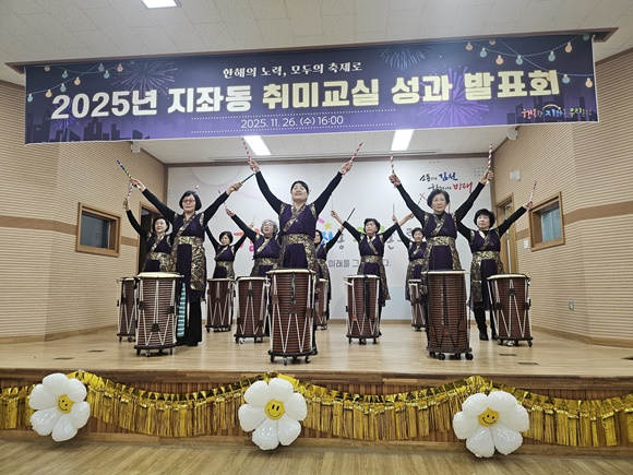 이어 배정화 지좌동장은 “바쁘신 가운데에도 꾸준히 참여하여 오늘 멋진 무대를 만들어주신 수강생분들께 감사드린다. 앞으로도 주민의 문화·여가 활동이 더욱 활성화될 수 있도록 다양한 프로그램을 지속적으로 지원하겠다.”라고 격려의 말을 전했다.