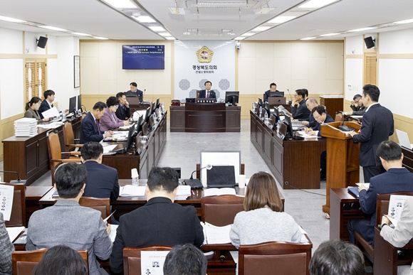 경상북도의회 건설소방위원회(위원장 박순범)는 11.26.(수) 상임위원회 회의를 열어 공항투자본부와 건설도시국 소관 2026년도 본예산안과 조례안 4건에 대해 심사했다.