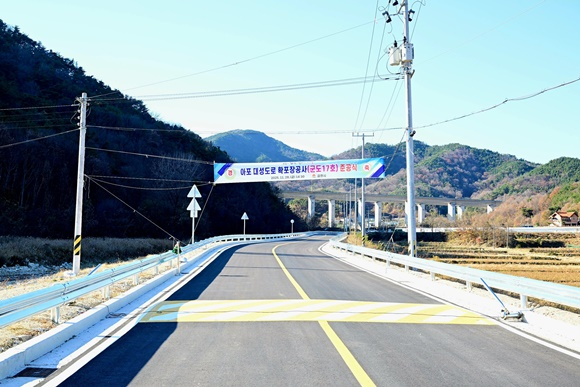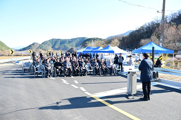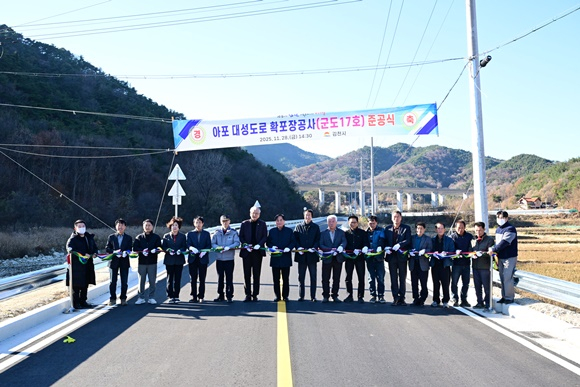 김천시는 지난 11월 28일, 아포읍 대성리 주민의 오랜 숙원사업인 아포 대성도로(군도17호) 확포장공사를 완료하고 도의원 및 지역구 시의원, 지역 주민 등 100여 명이 참석한 가운데 준공식을 개최했다.