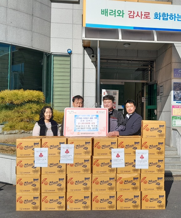 스피드메이트 부곡점 김우영 대표와 하늘OA시스템 박지훈 대표는 12월 1일 대곡동 행정복지센터(동장 강진규)를 찾아 관내 취약계층을 위해 라면 50상자(130만 원 상당)를 기부하여 지역 사회에 온정의 손길을 전했다.