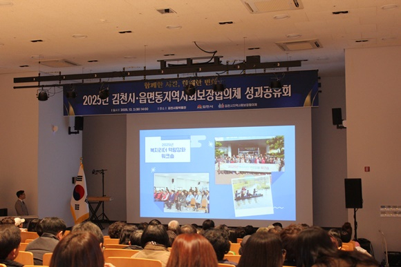 김천시는 12월 2일(화) 오후 2시, 김천시립박물관 강당에서 ‘2025년 읍면동지역사회보장협의체 성과공유회’를 성대하게 열었다. 이번 행사는 각 읍면동 협의체 위원과 담당 공무원 등 150여 명이 참석해 한 해 동안의 복지 활동 성과를 공유하고 우수 사례를 확산하기 위해 마련됐다.
