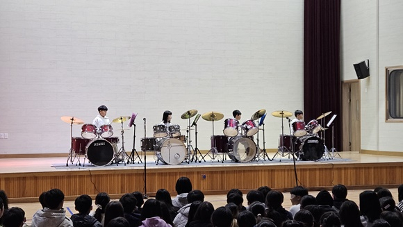 이번 공연은 늘봄학교 선택형 교육 프로그램인 성악(합창), 드럼, 바이올린 세 개의 부서에서 준비한 것으로, 12월 2일(화), 3일(수), 5일(금) 3일 동안 아침 활동 시간을 활용하여 진행되었다. 학생들은 그동안 갈고닦은 실력을 마음껏 발휘하며, 친구들에게 아름다운 선율을 선물했다.