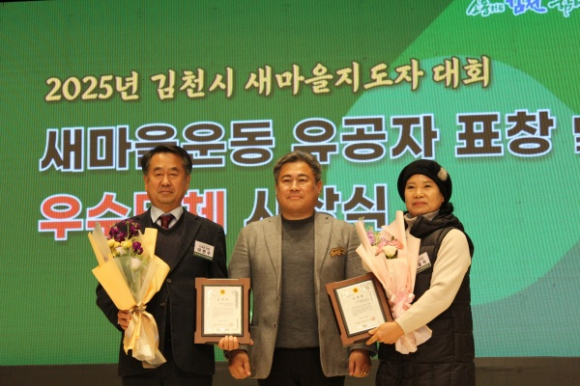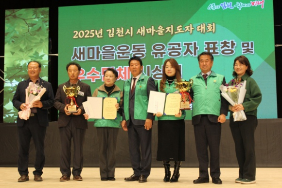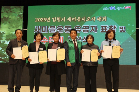 한편, 이날 행사 중 진행된 새마을운동 유공자 및 우수단체 시상식에는 지역사회의 발전을 위해 헌신한 공로를 인정받아, 김천시장 표창 24명, 국회의원 표창 2명, 경상북도의회 의장 표창 2명, 김천시의회 의장 표창 2명, 김천시새마을회장 표창 5명 등 총 35명의 유공자와 새마을운동 우수단체로 최우수상에 구성면, 우수상에 감천면, 율곡동, 장려상에 감문면, 대항면, 특별상에 봉산면, 조마면 등 총 7개 읍면동이 수상의 영예를 안았다.