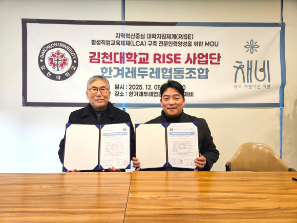 한겨레두레협동조합 김경환 상임이사는 “이번 협약을 통해 지역사회와 대학이 함께 책임 있는 장례문화 확산과 전문인력 양성을 추진할 수 있는 기반이 마련됐다”며, “조합의 장례문화 교육 경험과 현장 역량을 바탕으로 성인학습자의 재취업과 직무 전환에 실질적인 도움이 되는 프로그램을 적극 지원하겠다”고 말했다. 김천대학교 RISE사업단 대학평생직업교육 체제 구축(LCA)과제 정우민 교수는 “장례 분야는 고령화 시대에 필수적인 지역 기반 직무영역으로 자리 잡고 있다”며, “이번 협약을 계기로 현장 중심 실무교육, 재직자 직무향상 교육, 중장년 특화 교육 등을 강화해 지역사회가 필요로 하는 전문인력을 지속적으로 양성하겠다”고 밝혔다. 김천대학교 RISE사업단 평생직업교육 체제 구축(LCA) 프로젝트는 앞으로도 평생직업교육 확대와 지역 정주 기반 확립을 위한 후속 사업을 추진해 지역사회 전문인력 양성과 일자리 창출 기반 마련에 힘쓸 계획이다. 문의처 김천대학교 RISE사업단 054-420-4427
