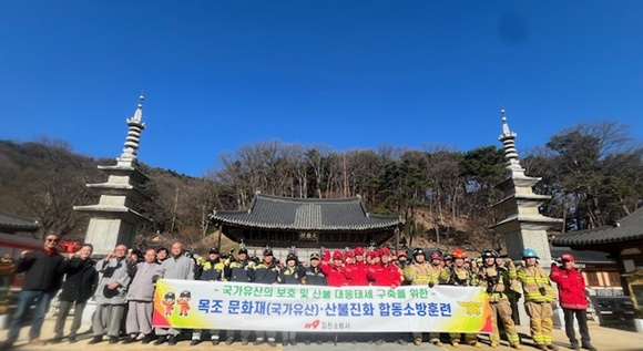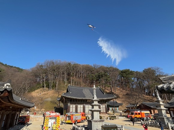 훈련은 화재에 취약한 목조 문화유산 방어 및 산불 확산 초기 대응에 초점을 맞췄으며, 화재신고 △관계인 소방시설 활용 초기대응 △현장 출동 △문화재 반출 △환자이송 및 화재진압 등 실전과 같은 절차로 실시했다.