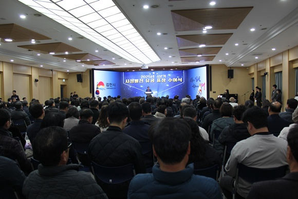 김천시는 12월 11일 오후 4시 시청 3층 강당에서 ‘2025년 4분기 시정발전 유공 표창 수여식’을 개최하고, 지역발전에 기여한 유공자들에게 감사의 뜻을 전했다. 행사에는 수상자와 가족, 축하객 등 약 150명이 참석해 따뜻한 분위기 속에서 진행됐다.