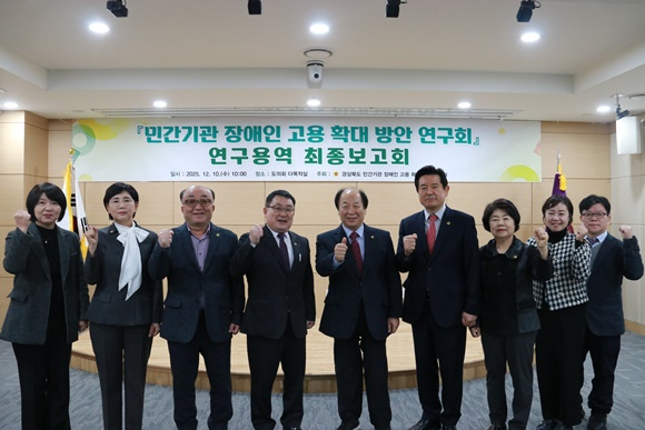 경북도의회 의원연구단체인 ‘민간기관 장애인 고용 확대 방안 연구회’(대표 박선하 의원)는 12월 10일(수) 오전 10시, 도의회 다목적실에서 「경상북도 민간기관 장애인 고용 확대 방안 연구용역」최종보고회를 개최했다.
