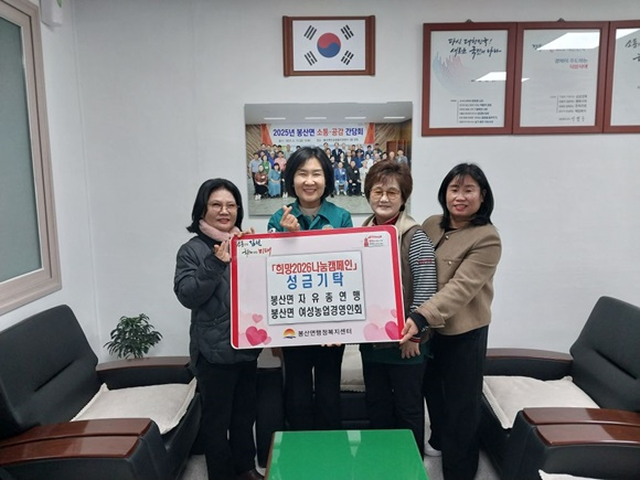 봉산면 행정복지센터(면장 이진숙)는 지난 12일, 봉산면 자유총연맹(여성 회장 양미애)과 봉산면 여성농업경영인회(회장 배명주)에서「희망2026나눔캠페인」에 30만 원을 기탁했다고 밝혔다.