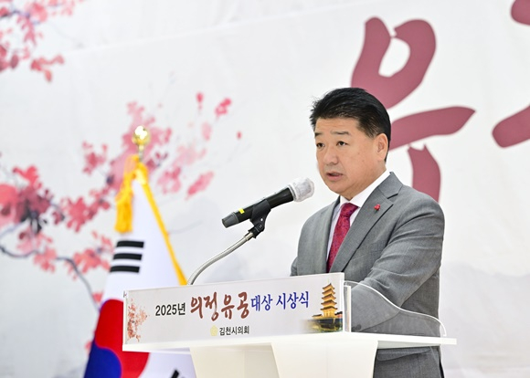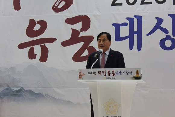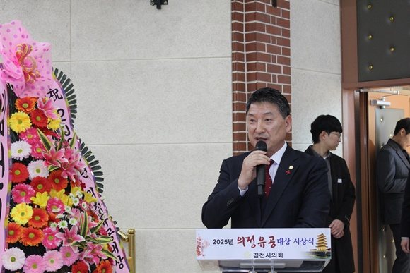 배낙호 김천시장은 축사를 통해 “의정유공대상 수상자 여러분은 각자의 자리에서 지역을 위해 묵묵히 헌신해 오신 진정한 김천의 주역”이라며 “시민을 먼저 생각하고 공동체 발전을 위해 애써주신 노고에 깊은 감사와 존경의 마음을 전한다”고 말했다.