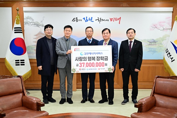 김천시는 지난 19일, 김천에너지서비스㈜(대표 박영진)로부터 관내 저소득 중·고등학생을 위한 장학금 3,700만 원을 전달받았다고 밝혔다.