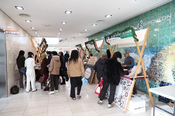 한국도로공사가 지원하고 김천대학교(윤옥현 총장) 산학협력단(윤경식 단장) 이 주관하는 민간초기창업 후속지원사업의 일환으로, 청년 창업기업의 성과를 시민과 공유하는 “12월 메리 청년마스! 겨울 플리마켓”이 12월 23일(화) 오전 10시부터 오후 5시까지, 김천시시설관리공단 산하 실내수영장 1층 로비에서 개최되었다.
