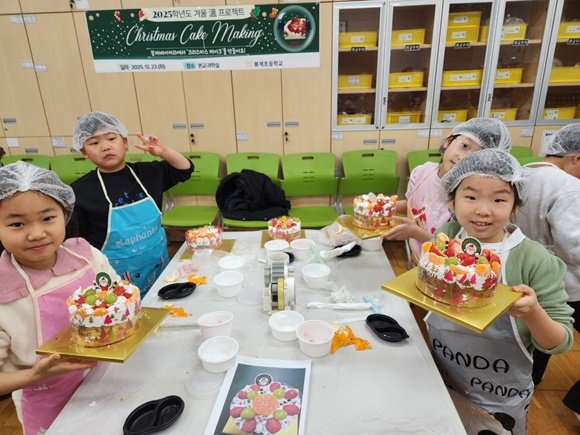 12월 23일(화)에는 전교생을 대상으로 ‘케이크 만들기 체험활동’이 진행되었다. 이번 활동은 학생들이 직접 케이크를 만들며 창의성과 협동심을 기를 수 있도록 마련된 프로그램으로, 아이들은 다양한 재료를 활용해 자신만의 케이크를 완성하며 즐거운시간을 보냈다. 교실 곳곳에 달콤한 향기와 함께 학생들의 웃음소리가 가득 퍼지며 연말 분위기를 한층 따뜻하게 만들었다.
