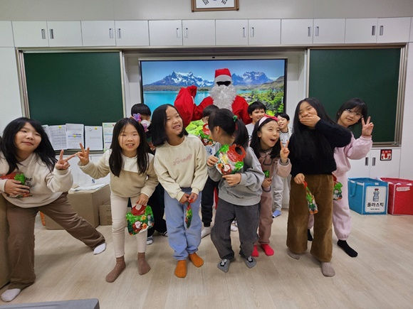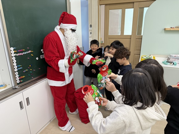 12월 24일(수)에는 유치원과 초등학생 88명을 대상으로 한 ‘산타 선물 나눔 행사’가 열렸다. 산타로 분장한 선생님이 교실을 찾아가 직접 선물을 전달하자 학생들은 큰 환호와 함께 기쁨을 표현했다. 한 저학년 학생은 “크리스마스를 손꼽아 기다렸는데, 산타가 진짜로 와서 깜짝 놀랐어요. 가족들에게 자랑할 거예요.”라며 밝게 웃었다.