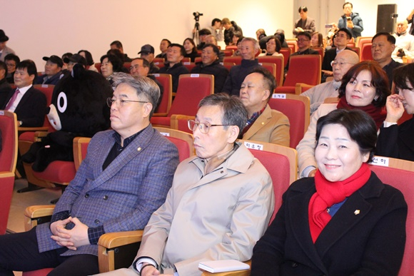 김천시(시장 배낙호)는 김천시립박물관 내 1층 강당에서 배낙호 시장, 이승우 부의장, 오세길·이상욱·박근혜·김응숙·박복순 시의원, 김재광 시설관리공단 이사장, 장명스님, 이은직 경북보건대총장, 윤옥현 김천대총장, 모태화 교육장, 기관단체장 및 대항면 주민대표 등이 참석한 가운데 『사명대사공원 미디어아트 조성사업(오삼 아지트)』 준공식을 개최했다.