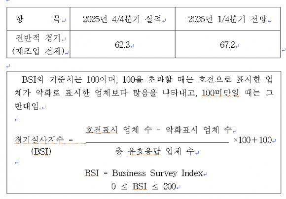 경기전망지수는 100 미만이면 다음 분기 경기가 이번 분기보다 나빠질 것으로 보는 기업이 더 많은 것이고, 100을 넘어서면 그 반대다.
