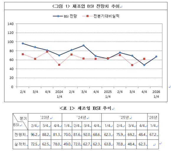 김천상공회의소(회장 안용우)가 최근 김천지역 관내 61개 제조업체를 대상으로 실시한 2026년 1/4분기(1월~3월) 기업경기전망지수를 조사한 결과 지난 분기 48.4에서 13.9포인트 상승한 62.3을 나타냈다.
