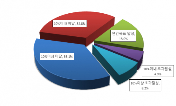 ‘10%이상 미달’(36.1%), ‘10%이내 미달’(32.8%), ‘연간목표 달성’(18.0%)