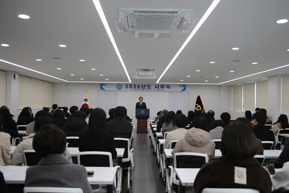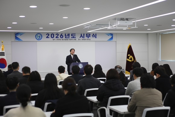경북보건대학교(총장 이은직)는 1월 5일 대학본부 회의실에서 2026년도 시무식을 개최하고, 개교 70주년을 맞은 새해의 출발과 함께 대학의 중장기 운영 방향과 미래 비전을 공유했다고 밝혔다.