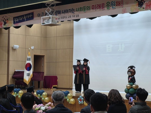교장 선생님은 졸업생 한 명씩 졸업장을 전달하며“어디서든 빛나는 사람이 되길 바란다”는 격려를 아끼지 않았다. 졸업생들을 대표하여 1, 2학기 전교회장들의 편지 낭독 중 많은 학부모가 훌쩍 커버린 자녀의 모습에 대견함을 표했다. 한 학부모는 “아이의 첫 사회생활이었던 초등학교를 무사히 마쳐 대견하다”며 “중학교에 가서도 지금처럼 밝고 건강하게 자라주길 바란다”고 말했다. 오늘 종업식과 졸업식을 마친 학생들은 약 2개월간의 겨울방학을 보낸 뒤, 오는 3월 새로운 교실과 학교에서 새 학기를 맞이하게 된다.