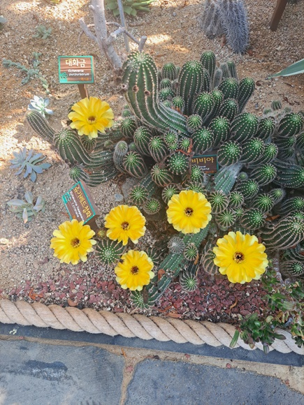 이번에 개화한 선인장들은 기둥형 및 군생형 선인장으로, 일반적인 관엽식물과 달리 짧은 기간 동안만 꽃을 피우는 특징을 가지고 있어 관람 시기가 매우 제한적이다. 특히 노란색, 연분홍색, 흰색 등 화려한 색감의 대형 꽃이 줄기 측면이나 상단에서 직접 피어나는 독특한 개화 형태를 보여 평소 쉽게 접하기 어려운 볼거리를 제공한다.