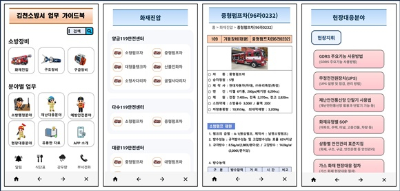 김천소방서는 현장 중심의 신속하고 정확한 업무 수행을 지원하기 위해 내부 전용 모바일 애플리케이션 「김천소방서 업무 가이드북」을 자체 제작하여 본격 운영에 들어갔다.