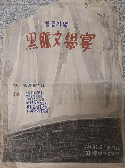 | "흑맥문학회 창립연" 개최 포스터(1959. 12. 27.). 사진 제공:박찬선 시인 |