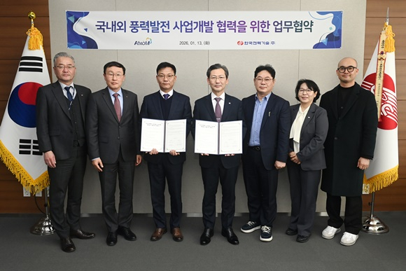 한국전력기술(사장 김태균, 이하 ‘한전기술’)은 13일, 국내 풍력발전 O&M(운영‧유지보수) 플랫폼 전문기업인 ㈜에이투엠과 ‘국내외 풍력발전 사업 발굴 및 공동개발 협력체계 구축’을 위한 업무협약(MOU)을 체결했다.